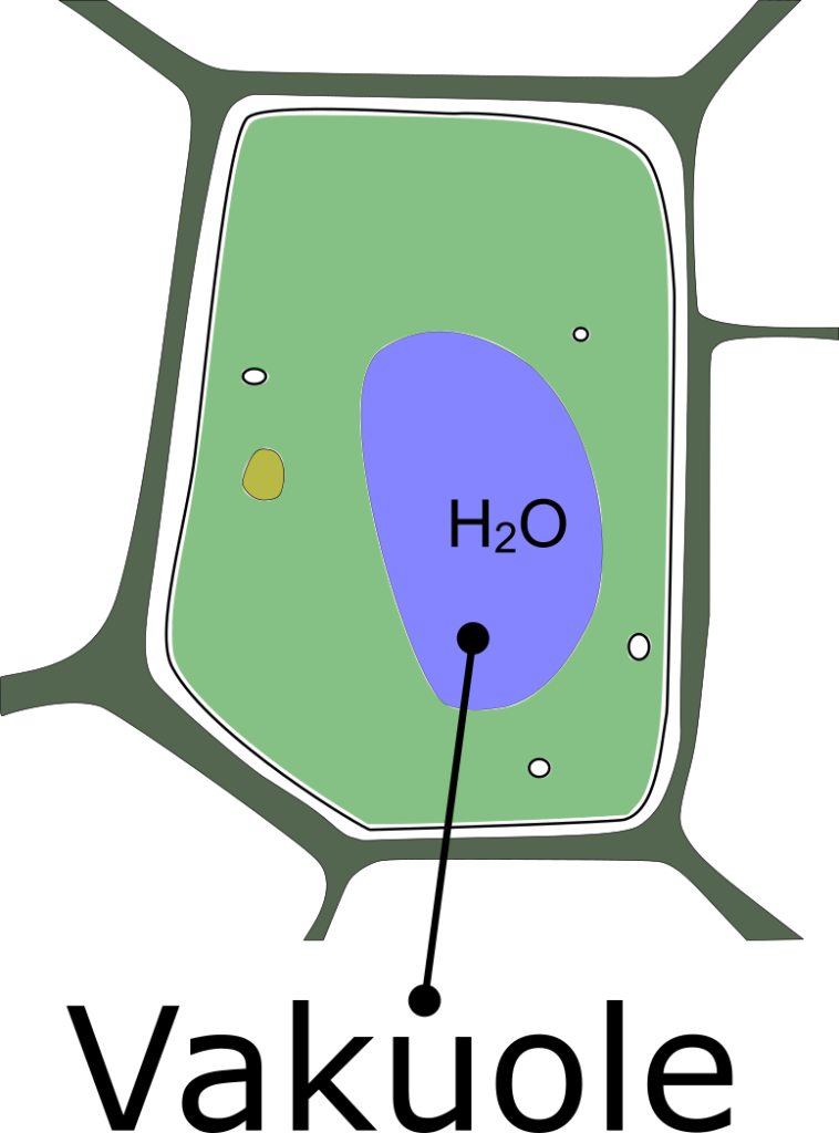 Vakuolen findes hos landplanter og er en væskefyldt beholder. I en frisk plante har den overtryk og er med til at holde planten stiv.