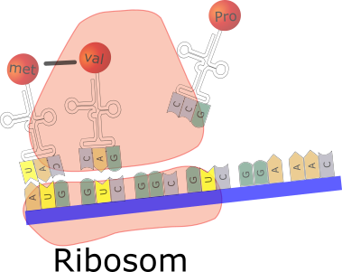 I bakterieceller, som ikke har nogen kerne, bliver RNA straks besat med ribosomer. Proteinsyntesen foregår frit i cytoplasmaet, da der heller ikke findes noget endoplasmatisk retikulum. Respirationen hos prokaryoter (bakterier) sker ved hjælp af enzymer i cytoplasmaet og på cellemembranens inderside.