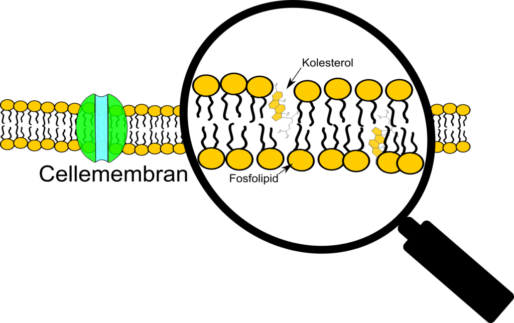 Cellemembranen består af fedt. Det er primært fosfolipid og kolesterol.