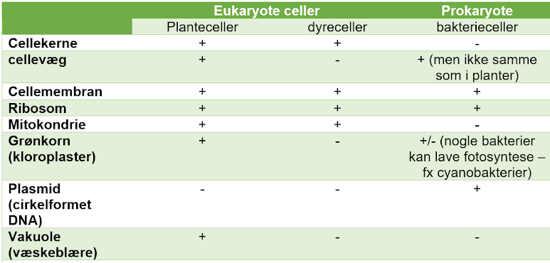 Alle levende organismer består af celler, og cellen udgør livets mindste enhed. Nogle består af en enkelt celle, andre er flercellede. Bakterier, gær, nogle alger og amøber er encellede og lever uden at samarbejde med andre celler i en organisme. Flere planter, og alle dyr og mennesker er flercellede organismer, hvor forskellige celler samarbejder om at få en organisme til at fungere. Alle celler laver respiration, har DNA, og de kan vokse og dele sig.